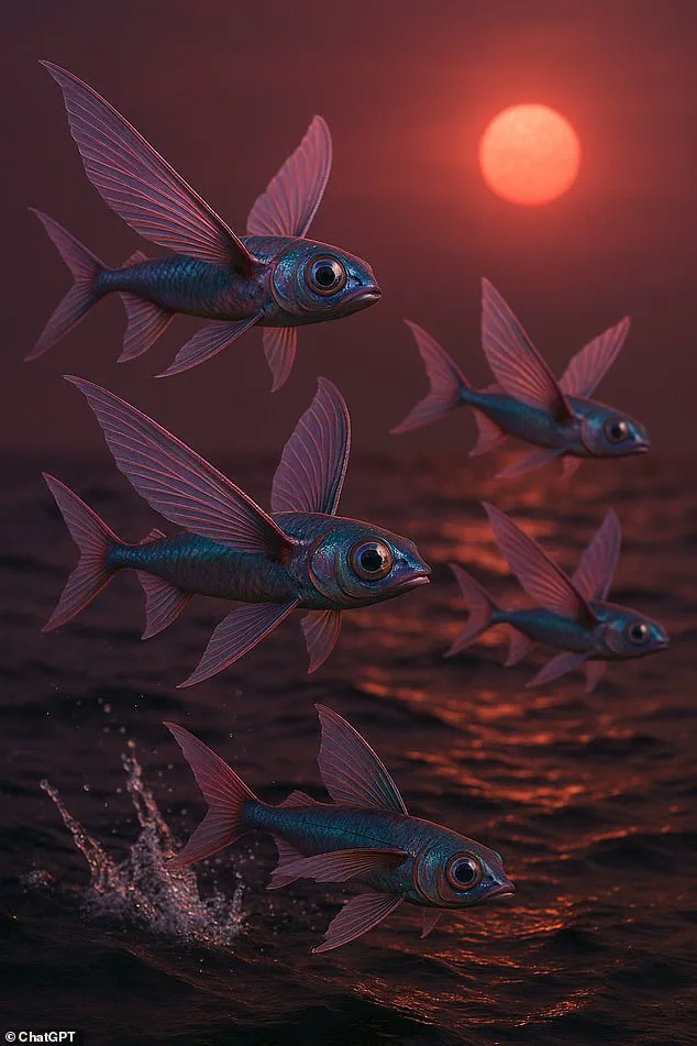 Scientists have said that flying fish or even birds might develop on water worlds to avoid predators (AI impression)
