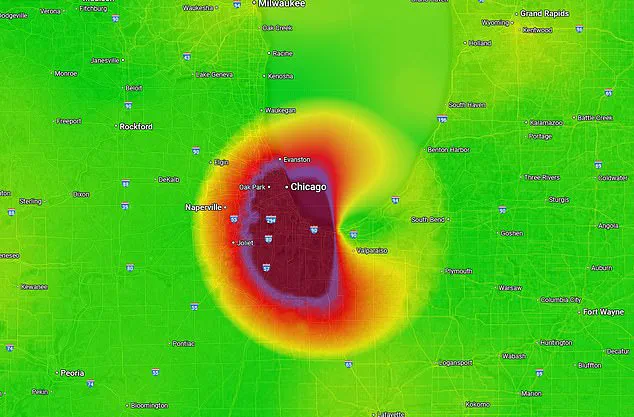 Google Maps revealed a massive cloud of hazardous air sitting over Chicago Wednesday afternoon