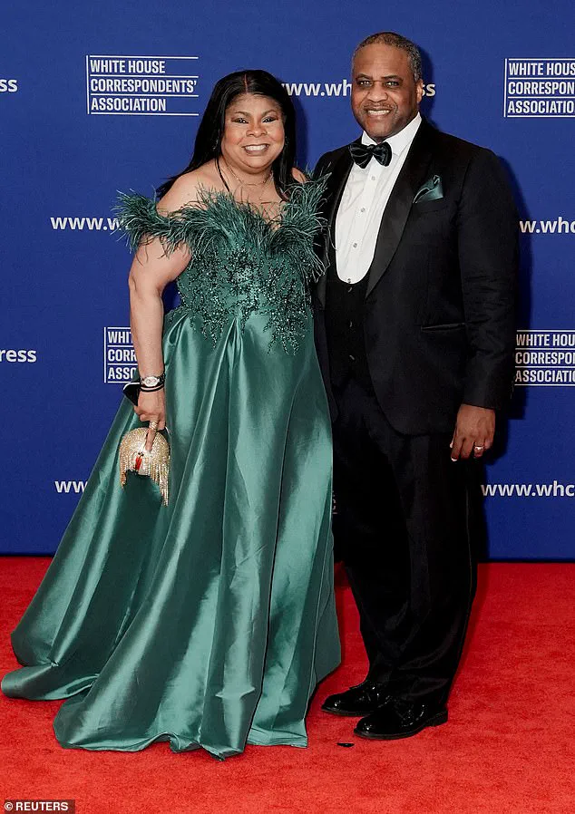 MSNBC political contributor April Ryan wore a green gown to the prestigious dinner, arriving with her husband James Ewing.