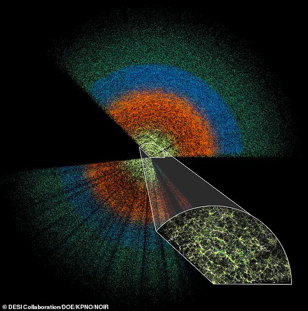 The Higgs field fills the entire known universe, if it is ever pushed out of its ‘false vacuum’ the resulting chain reaction would spread through the entire field. Pictured: The DESI map of the universe