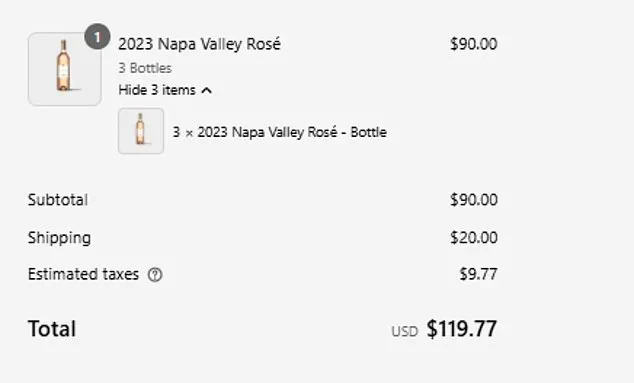 The wine, priced at $30 for three bottles (plus a mandatory $20 shipping fee, making the minimum purchase $119), has drawn sharp criticism for its exorbitant cost.