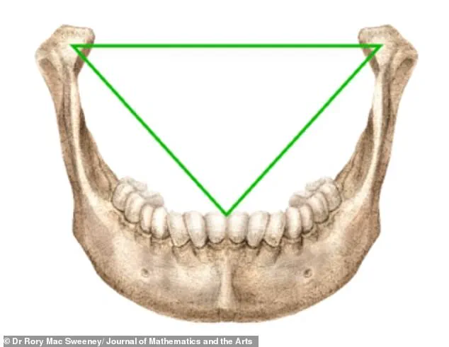 This triangle, which connects the jaw joints to the midpoint of the lower central incisors, ‘corresponds precisely’ to da Vinci’s reference to an ‘equilateral triangle’ in his Vitruvian Man construction, Dr Sweeney said