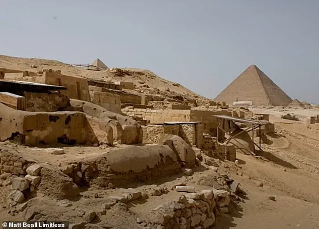 Hawass’s colleague, Mark Lehner, has been excavating a site east of the pyramid, revealing what they call ‘the worker’s city.’ Here, archaeologists have uncovered facilities for sorting salted fish, a large bakery for bread, barracks, and the settlement where laborers lived. ‘There’s a popular myth that the workers ate only garlic, onions, and bread, but we found thousands of animal bones at the site,’ Dr.