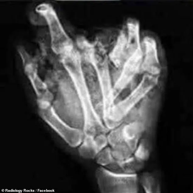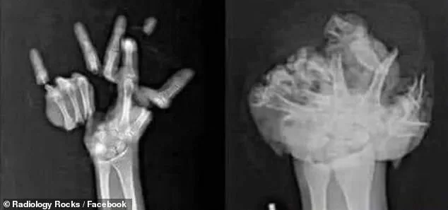 A collection of X-rays shared by the Facebook page Radiology Rocks has exposed the gruesome aftermath of such incidents, highlighting the fragility of the human hand when subjected to uncontrolled explosions.