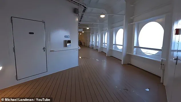 However, the physical layout of the ship complicates this narrative: the shuffleboard area on the port side is located near the front of the vessel, far from the portholes situated at the rear end of the jogging track.