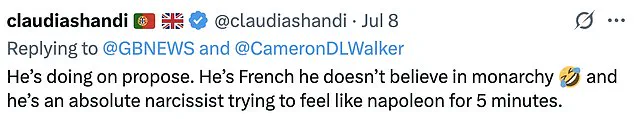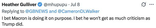 He’s French, he doesn’t believe in monarchy and he’s an absolute narcissist trying to feel like Napoleon for 5 minutes.’ Others echoed similar sentiments, suggesting that Macron’s behavior was a calculated snub, contrasting it with Trump’s earlier actions, which had prompted criticism but also some attempts at correction.