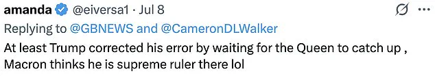 A user remarked, ‘At least Trump corrected his error by waiting for the Queen to catch up, Macron thinks he is the supreme ruler there.’