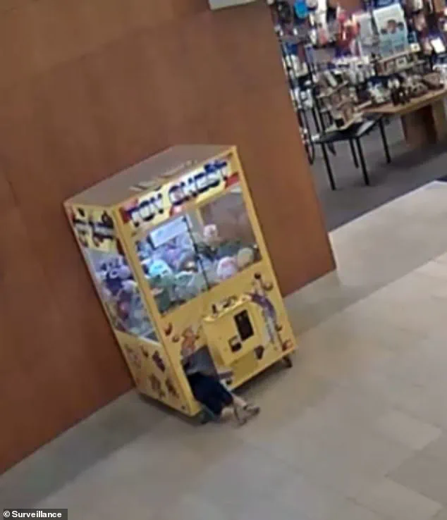 The footage, which has since gone viral on social media, shows the boy’s daring attempt to claim a prize, a moment that quickly turned into a tense standoff between the child and the arcade-style game’s unyielding structure.