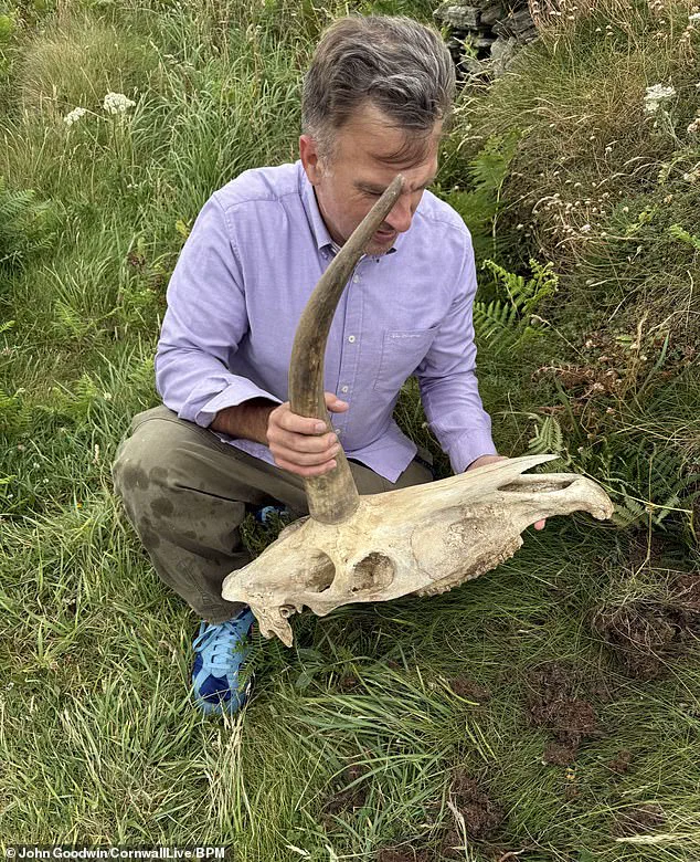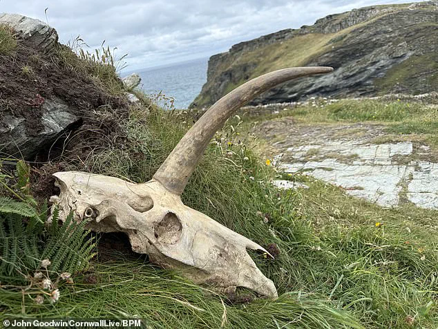 A mysterious skull with a massive horn protruding from it—described by its discoverer as resembling a ‘unicorn’—has been unearthed near the ruins of Tintagel Castle, the legendary birthplace of King Arthur.