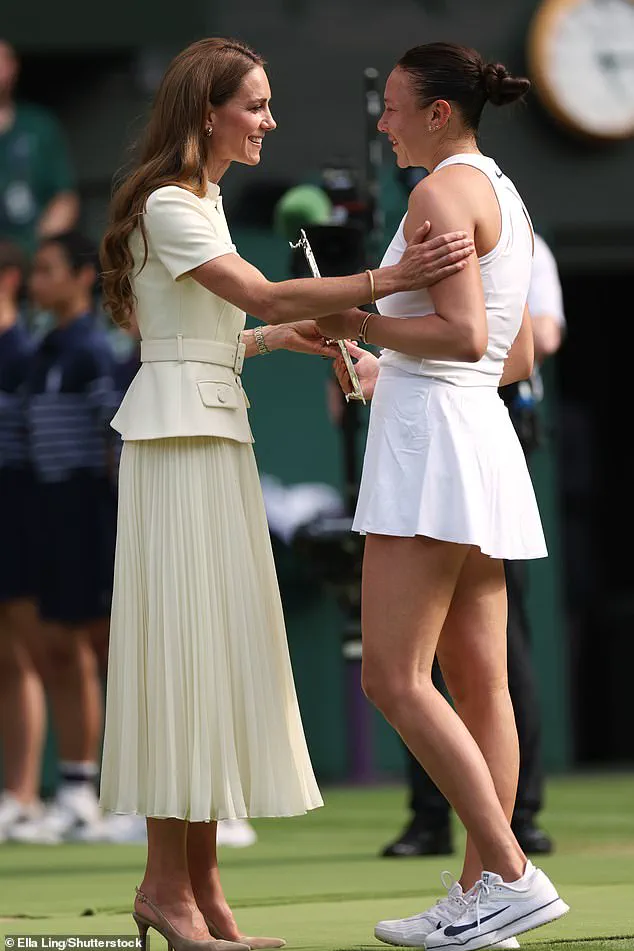This sentiment was echoed in her interactions with Jabeur, who revealed that the princess had offered similar words of encouragement after the previous year’s final. ‘Same thing after last year,’ Jabeur said, recounting how the royal had urged her to ‘be strong, to come back and win a Grand Slam, win a Wimbledon.’