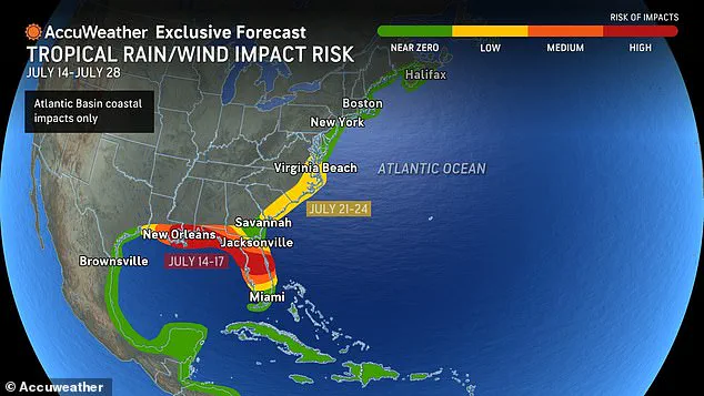 AccuWeather has issued a dire warning to residents along the East Coast, cautioning that an intensifying tropical rainstorm is set to unleash a wave of stormy weather throughout the coming week.
