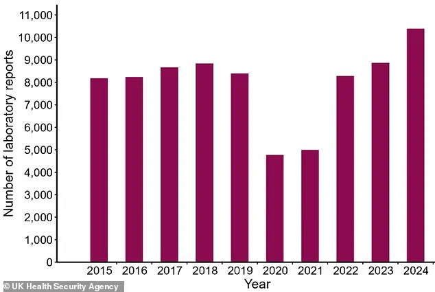 Data released by the UKHSA this week revealed a staggering increase in infections, with over 10,000 cases recorded in 2024—a rise of nearly 20% compared to the previous year.