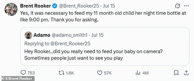 Rooker’s response to the fan’s criticism, however, was more than just a defense of his actions—it was a statement about the pressures he faces as an athlete in the public eye.