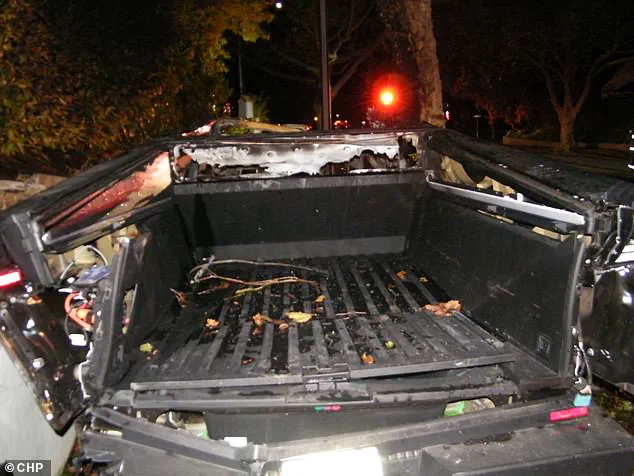 Firefighters arrived on the scene but were unable to extinguish the fire, which authorities confirmed was unrelated to the vehicle’s electric battery.