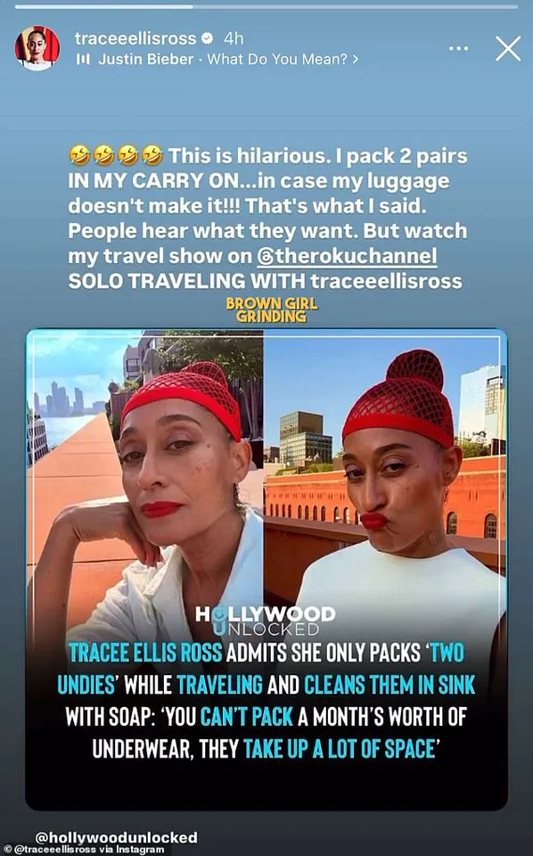In a world where celebrities often curate meticulously polished personas, Ross’s honesty about her habits—whether it’s her minimalist packing or her insistence on washing her own underwear—resonates deeply with fans. ‘Miss Tracee, I didn’t think I could love you more but after this, I do,’ one fan wrote, capturing the emotional response of many who see in her a reflection of their own values.