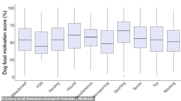 Hounds, for instance, were found to be the next most likely group to exhibit high food motivation.
