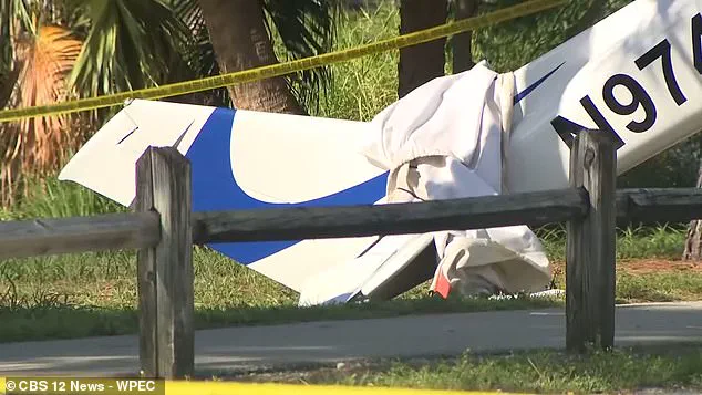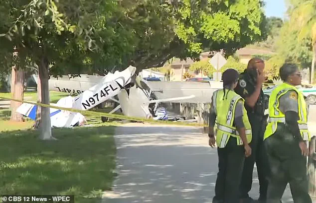 The incident occurred just after 4:30 p.m. when the plane, which had recently taken off from the nearby Lantana Airport, struck the roof of a Honda Civic traveling on Lake Osborne Drive near Cochran Drive.