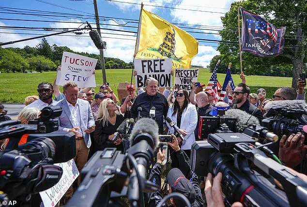 Steve Bannon (center) former chief strategist for President Donald Trump, served a four-month sentence in FCI Danbury, one of the federal lock ups that Diddy's legal team should consider, Sam Mangel told the Daily Mail