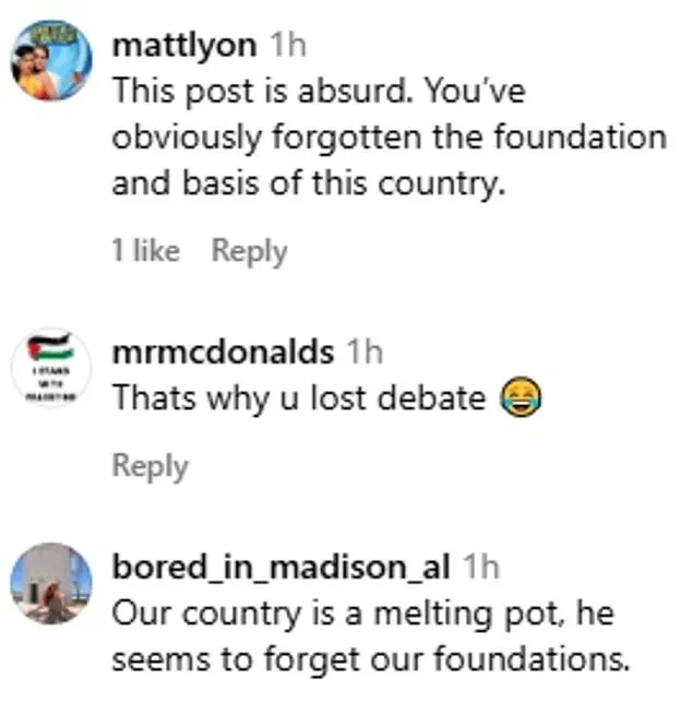 All good?’ Another user echoed this sentiment, stating, ‘But if we worship God in their country we’re killed.’ These remarks reflect a broader tension within the Trump administration’s base, where some view religious pluralism as a threat to national cohesion, while others see it as a cornerstone of American democracy.
