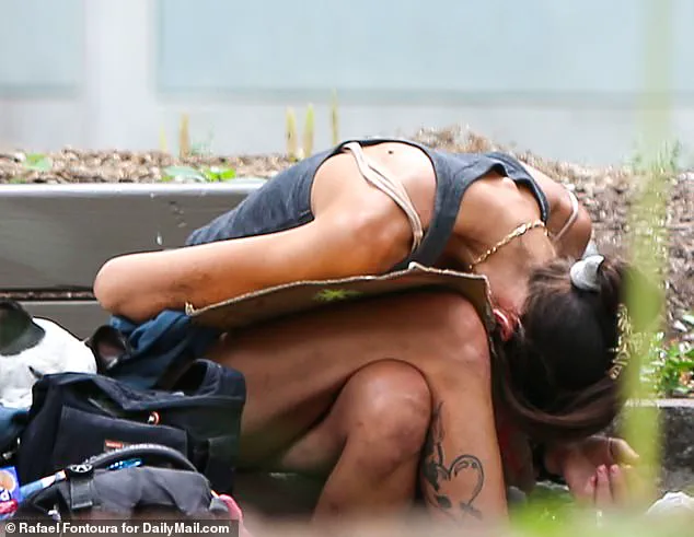 Nearby, a young man’s arm gushed blood after a self-inflicted injection, the scene playing out in full view of the grandiose City Hall just a few blocks away. ‘That’s in broad daylight, right by City Hall,’ Louis said, his voice rising with indignation. ‘Literally someone can look out their window and see this, and nothing is being done.’