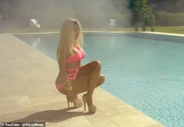 The so-called ‘Stiletto Challenge’ has taken social media by storm, with thousands of users attempting to replicate the scene from Minaj’s music video, where the rapper crouches in heels with one leg crossed over the other beside a swimming pool.