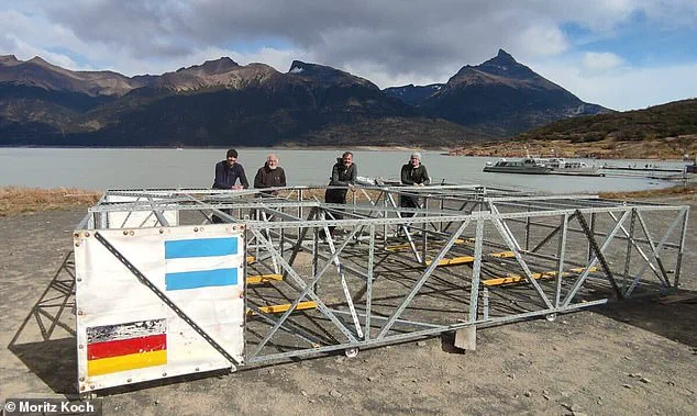 The team with their ground-penetrating radar apparatus, which looks like an oversized Meccano toy and can scan through the ice to work out its dimensions