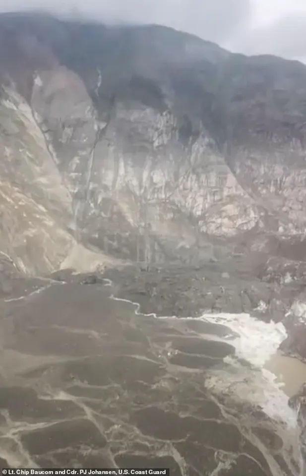 Aerial surveys conducted by the US Coast Guard revealed a landscape scarred by the disaster, with video footage showing debris strewn across the ground and a clear path of destruction down the mountainside. “The scale of this event is truly immense,” said one Coast Guard official, who emphasized the challenges of accessing the remote area to assess the full extent of the damage.