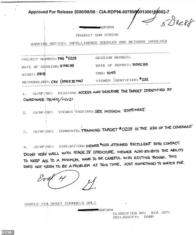 These files, first released in 2000 and resurfaced in a March 2025 *Daily Mail* article, suggest that the U.S. intelligence agency may have deployed psychic ‘remote viewing’ to track the artifact—a revelation that has sent shockwaves through both the academic and pop culture worlds.