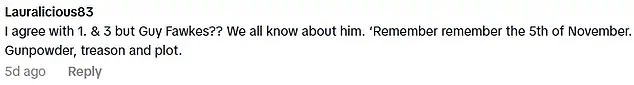 One viewer remarked, ‘I agree with 1 & 3 Guy Fawkes??