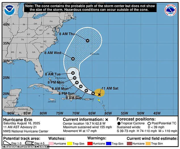 For now, the world watches as Hurricane Erin continues its deadly journey across the Atlantic, a stark reminder of nature’s power and the fragility of human preparedness in the face of such forces.