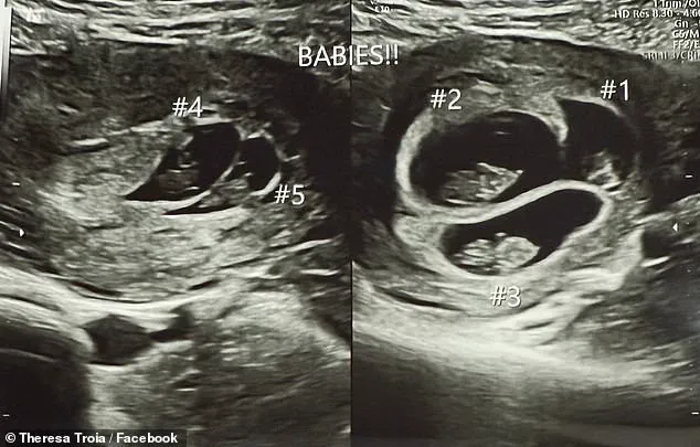 The fact that this occurred without any medical intervention adds another layer of complexity, raising questions about the biological mechanisms that could lead to such an occurrence. ‘I didn’t know I was carrying five babies until my scans showed it,’ Troia said, recalling the moment the reality of her situation sank in. ‘It was odd.