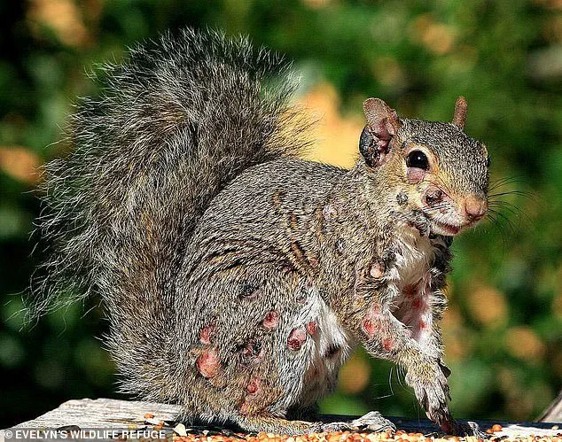 In the northern US and Canada, squirrels have been spreading squirrel fibromatosis, a virus that causes wart-like growths on their bodies.