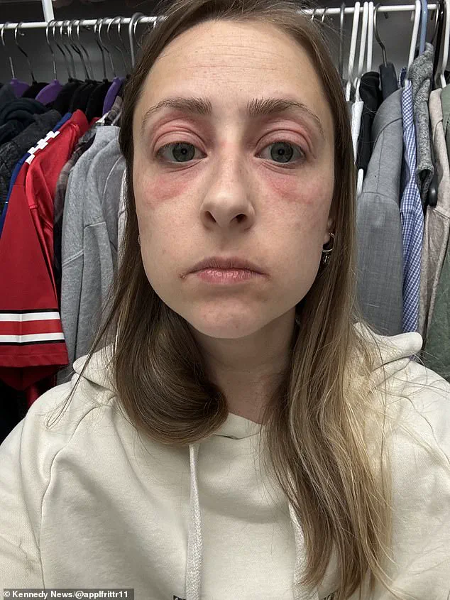 Her eyelids and the surrounding area turned pink, became itchy, and started bleeding.