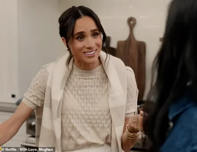 Meghan, 44, had previously sparked outrage when she corrected her celebrity friend Mindy Kaling during the first season of *With Love, Meghan*, insisting that she was no longer ‘Meghan Markle’ but ‘Meghan Sussex.’ This declaration, made in the context of a lighthearted conversation about fast food and parenting, was met with a wave of skepticism.