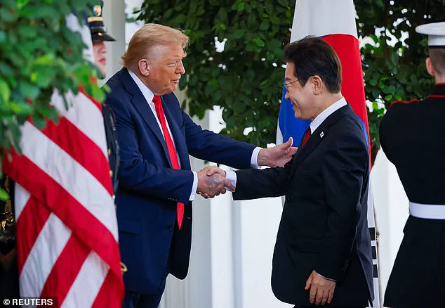 The incident occurred as the two leaders discussed trade agreements and regional security, with Trump’s hand clearly visible during a handshake with his South Korean counterpart.