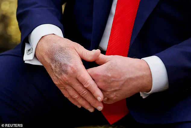 The persistent appearance of bruises on President Donald Trump’s hands, coupled with occasional swelling in his ankles, has sparked a mix of public curiosity and concern during his second term in office.