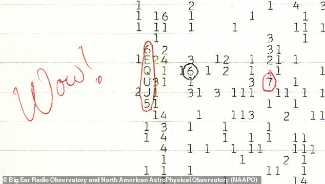 The signal, detected by the Big Ear Radio Observatory in Delaware, Ohio, was so extraordinary that astronomer Jerry Ehman scribbled ‘Wow!’ in red ink on the printout, a moment that would become etched into history as the ‘Wow! signal.’ For decades, scientists have debated its origin, with theories ranging from an alien message to a natural astrophysical phenomenon.