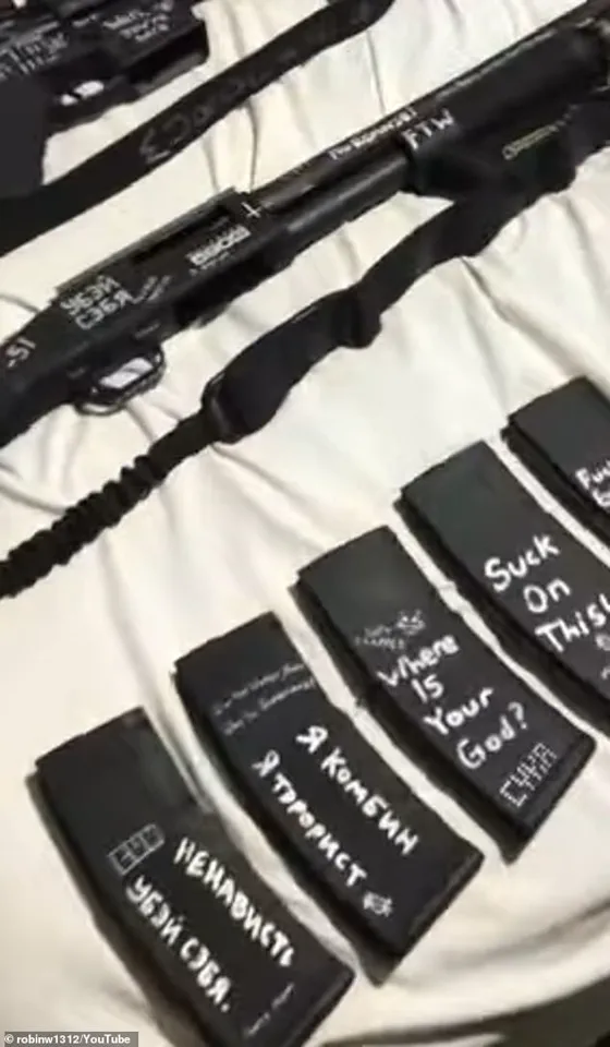Videos and images shared on the platform depicted gun parts, including a semi-automatic rifle and a shotgun, each marked with the names of other mass shooters.