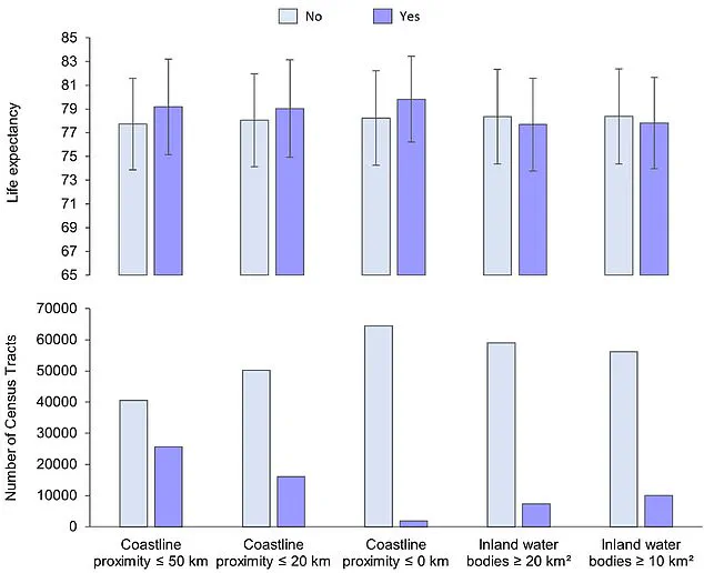 The study analyzed data from over 66,000 census tracts across the United States, comparing life expectancy and health metrics based on proximity to water.