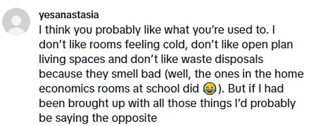 A British commenter weighed in with a pointed observation: ‘AC is bad for the planet; it uses a ton of expensive electricity, and garbage disposals are terrible for sewers.