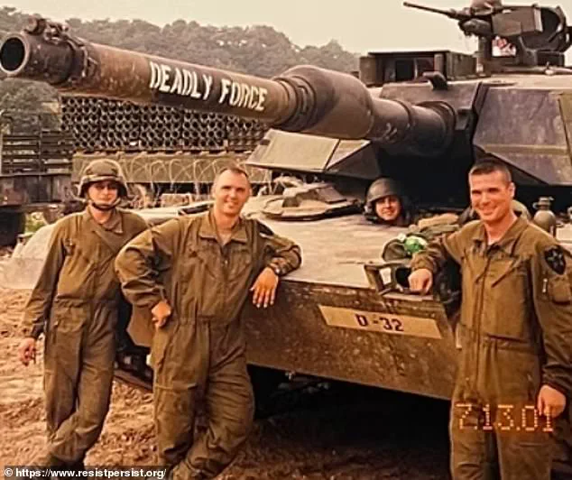 Videos posted online showed him shouting to a crowd of protesters and onlookers as the flag burned next to him. ‘I served over 20 years in the US Army.