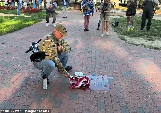 Jay Carey, a decorated veteran with over two decades of service, ignited the flag in Lafayette Square on Monday as a direct challenge to Trump’s new executive order, which threatens prison time for anyone who destroys the American flag and deportation for non-citizens who do so.