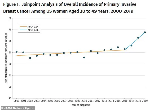 A separate analysis published in the *Journal of the American Medical Association* noted a 0.79 percent annual increase in breast cancer rates between 2000 and 2019.