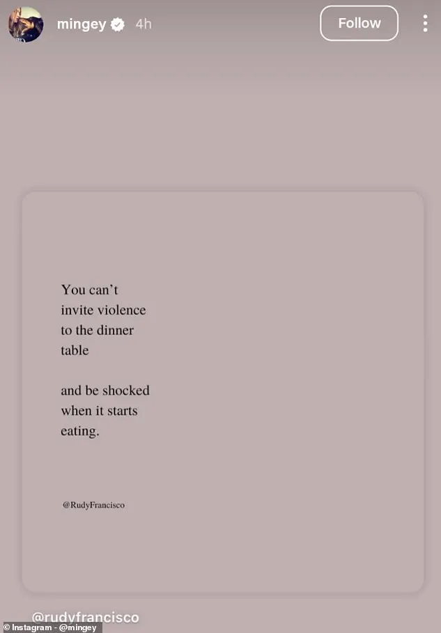The 39-year-old actress, known for her roles in films like *Mamma Mia!* and *Mean Girls*, reshared a text post on Instagram Story that read: ‘You can’t invite violence to the dinner table and be shocked when it starts eating.’ The post, which was accompanied by a separate text message where she described Kirk as ‘hateful,’ has sparked a firestorm of reactions across social media platforms.
