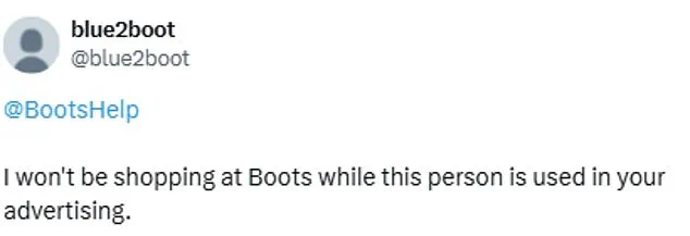 She’s an anti-Semite.’ The criticism has extended to comparisons with other retailers, with one user noting, ‘Looks like none of this bothers @bootsuk.