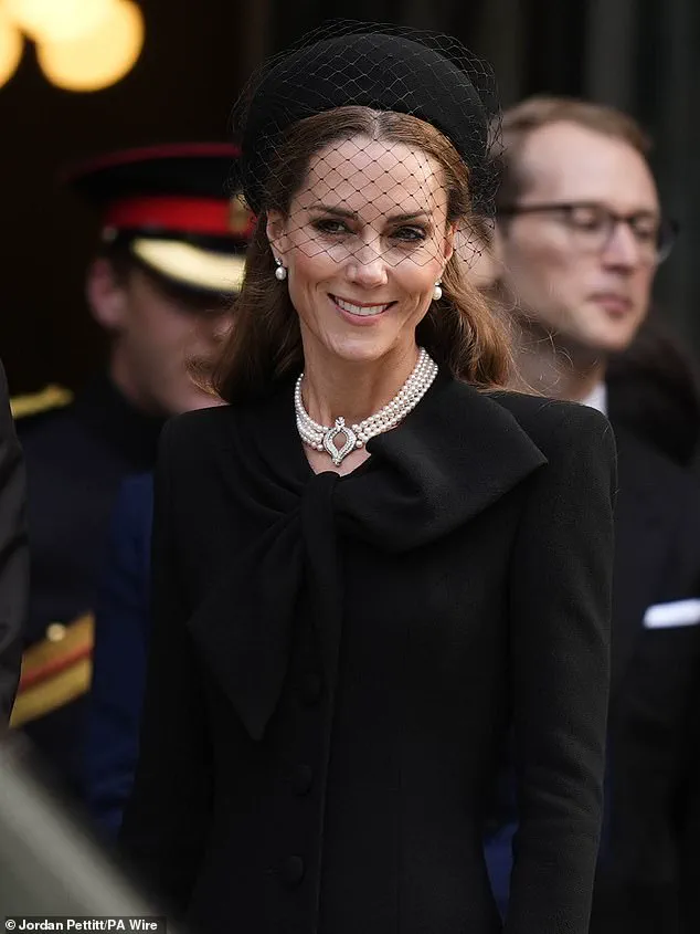 The Prince and Princess of Wales, William and Catherine, attended the service in black, their presence a testament to the Duchess’s enduring influence.