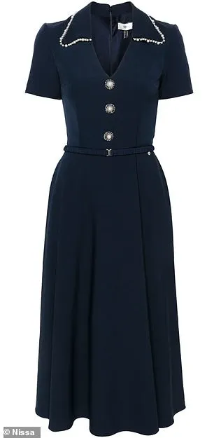 The dress, which featured pearl detailing at the collar and large pearl buttons at the chest, was a masterclass in understated sophistication.
