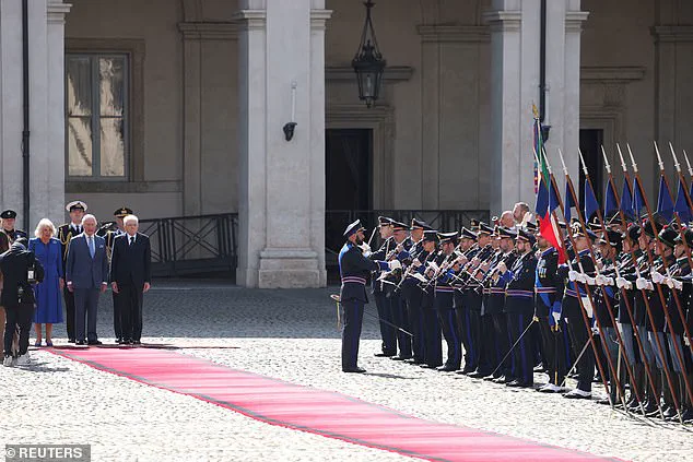 Upon arrival, King Charles III, 76, and Queen Camilla, 77, were escorted by mounted Quirinale Guards through a corridor lined with soldiers from various branches of the armed forces.