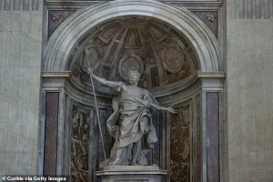 Beneath the grand dome of Saint Peter’s Basilica in Vatican City stands a striking statue of Longinus, crafted during the Renaissance.