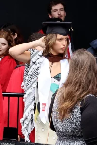 As she walked across the stage, Nix wore a black and white keffiyeh scarf — a traditional Middle Eastern headscarf that has become an enduring symbol of Palestinian identity and resilience.